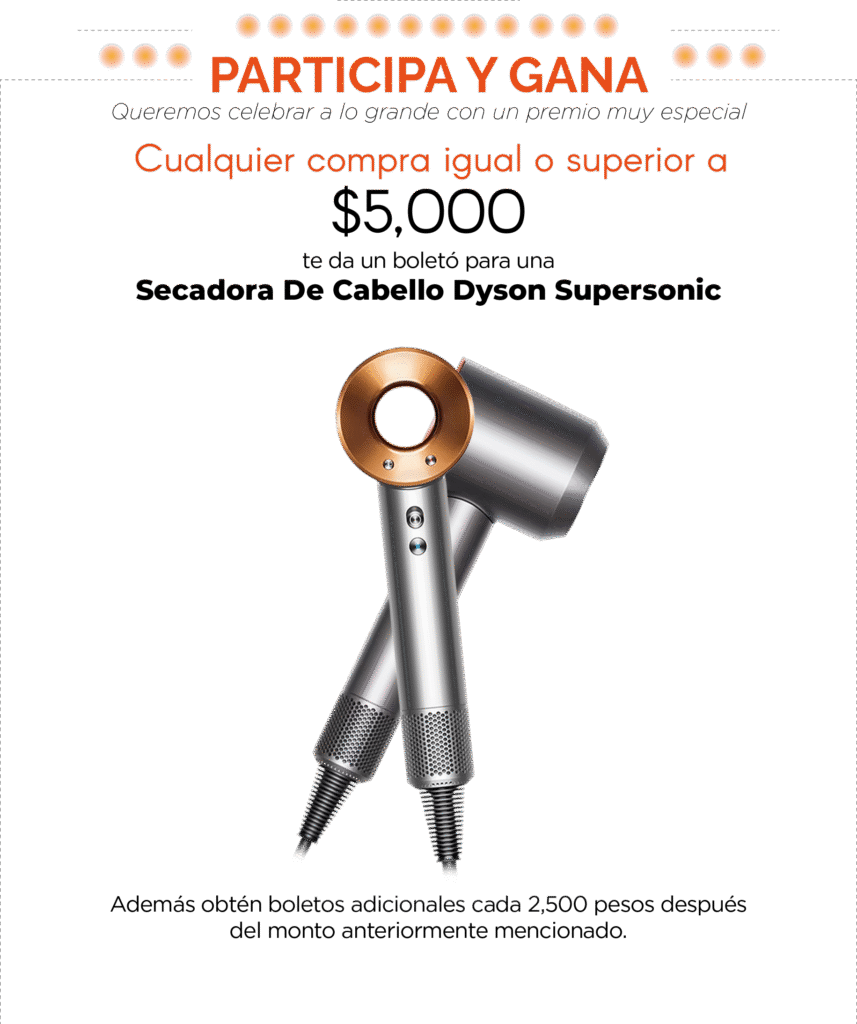 - Cualquier compra igual o superior a $5,000 MXN te da un boleto para un sorteo de premios.